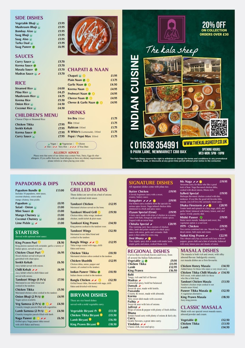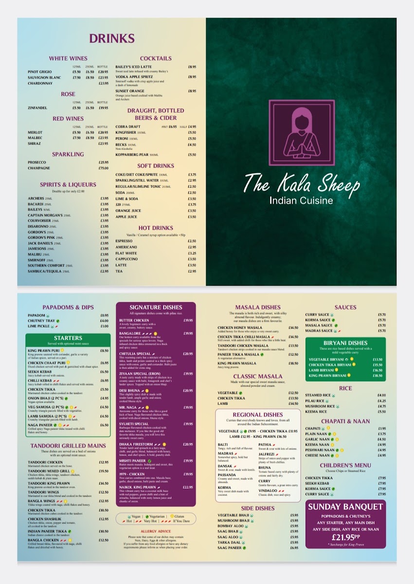 The Kala Sheep Indian Restaurant & Takeaway Menu